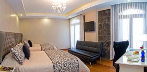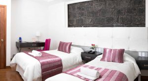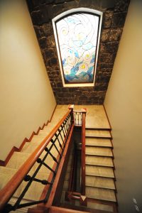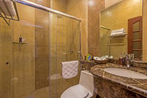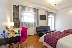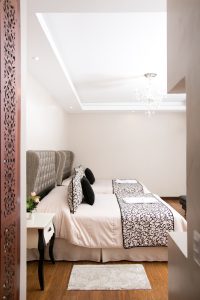 This large suite in the courtyard adobe has a Queen-size built-in platform bed and a large indoor/outdoor stone tub with a rain shower. The suite features a full kitchen with breakfast bar, a spacious sitting area with a wood burning fireplace. The private patio offers dramatic views of the San Jacinto Mountains. The suite features a full kitchen with breakfast bar, a spacious sitting area with a wood burning fireplace. The private patio offers dramatic views of the San Jacinto Mountains.