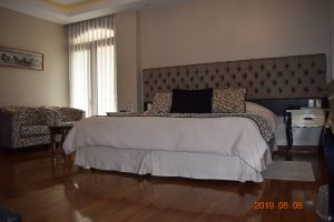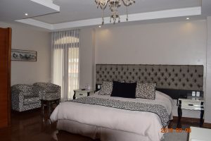 The suite features a full kitchen with breakfast bar, a spacious sitting area with a wood burning fireplace. The private patio offers dramatic views of the San Jacinto Mountains.